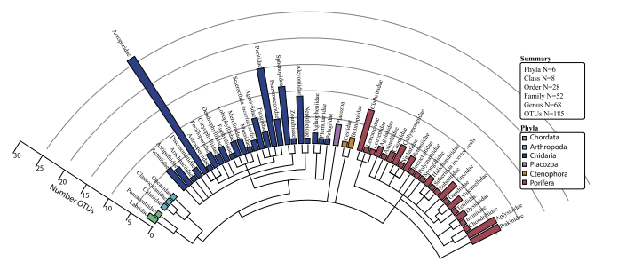 The eDNA approach recovered 78 coral ITS2 OTUs across 25 genera, closely matching the diversity recorded by divers (68 species across 26 genera). Some differences between eDNA and visual records likely reflect natural genetic variation, cryptic species, or challenges in visual identification.